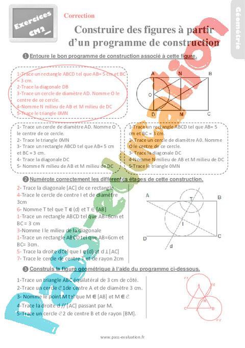 Exercices – Construire une figure géométrique à partir d’un programme de construction pour le CM2 – Correction pdf
