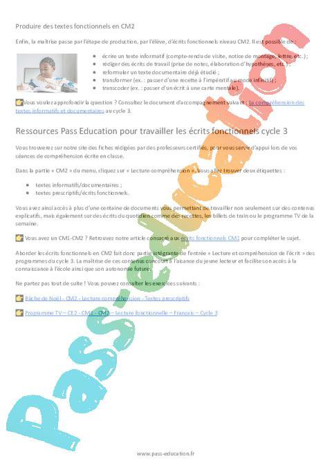 Les écrits fonctionnels en CM2 avec Pass Education pdf