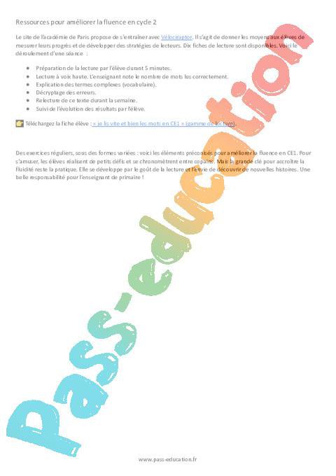 Ressources pour améliorer la fluence en cycle 2Le site de l’académie de Paris propose de s’entraîner avec Vélociraptor. Il s’agit de donner les moyens aux élèves de mesurer leurs progrès et de développer des stratégies de lecteurs. Dix fiches de lecture sont disponibles. Voici le déroulement d’une séance :