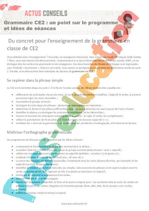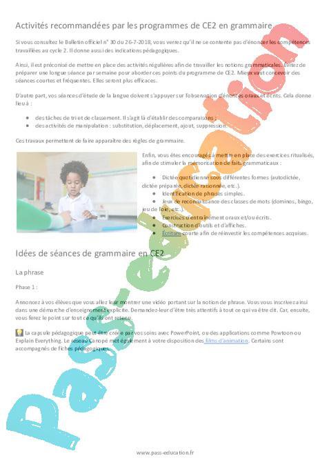 Grammaire CE2 : un point sur le programme et idées de séances pdf