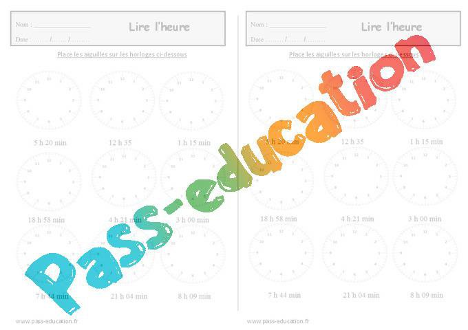 Heure – Ce1 – Exercices – Apprendre à lire l’heure – Cycle 2 – PDF à imprimer