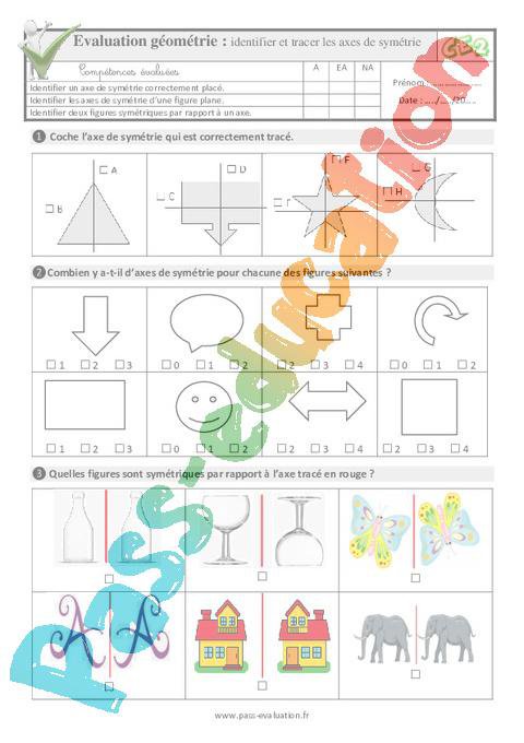 Evaluation géométrie : identifier et tracer les axes de symétrie