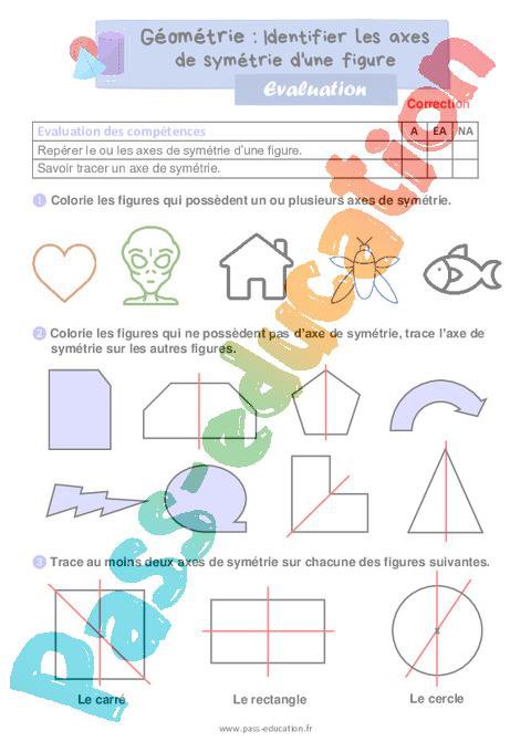 Evaluation Correction ce1 Identifier les axes de symétrie d’une figure pdf