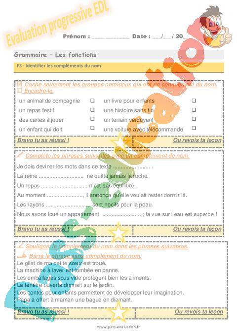 Identifier les compléments du nom au CM2 – Evaluation progressive avec le corrigé – Cycle 3 – PDF à imprimer