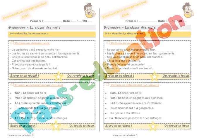 Identifier les déterminants – CE2 – Evaluation progressive pdf