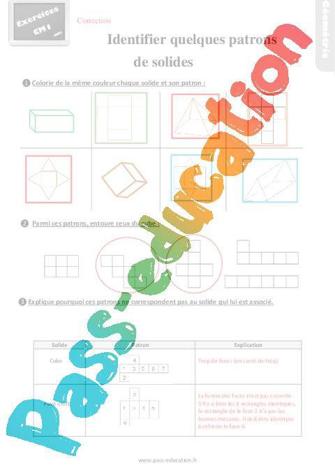 Exercices pour le Cm1 – Identifier les patrons de solides pdf