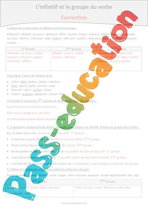 Cm2 – Exercices avec correction sur l’infinitif et les groupes de verbes