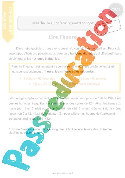 Je lis l’heure sur différents types d’horloges.-CM1-Leçon pdf