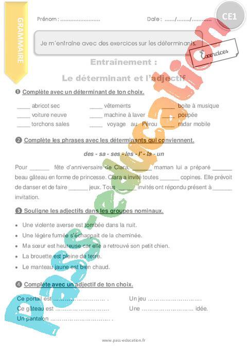 Je m’entraîne avec des exercices sur les déterminants (révision)-CE1-Exercices pdf