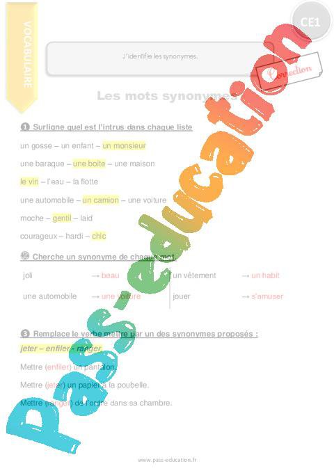J’identifie les synonymes.-CE1-Exercices pdf