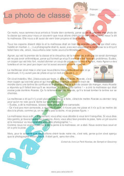 La photo de classe – Ce2 – Récit – Lecture Correction pdf