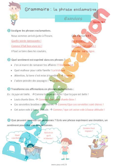 Exercices de grammaire avec la correction sur : La phrase exclamative – Cm1.