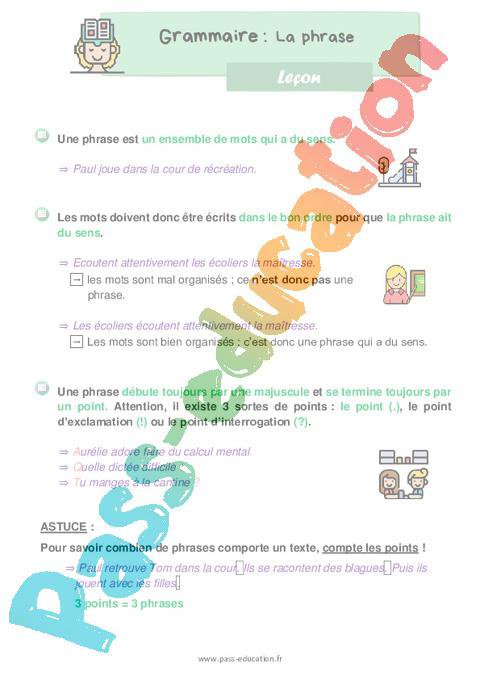 Leçon ce1 La phrase pdf