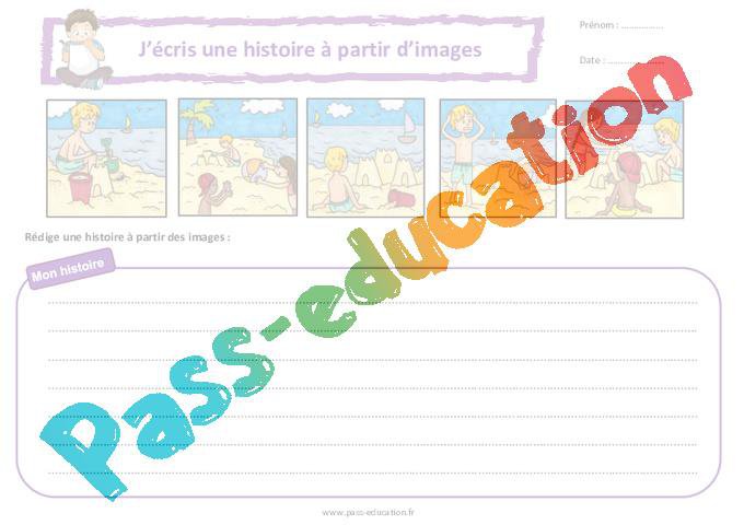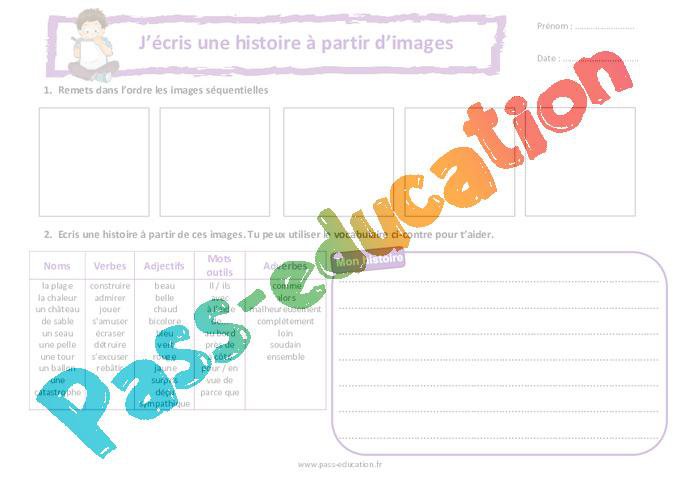 Images séquentielles pour production d’écrit (Rédaction) au Ce1 et Ce2 sur la plage.