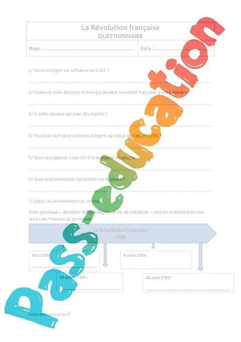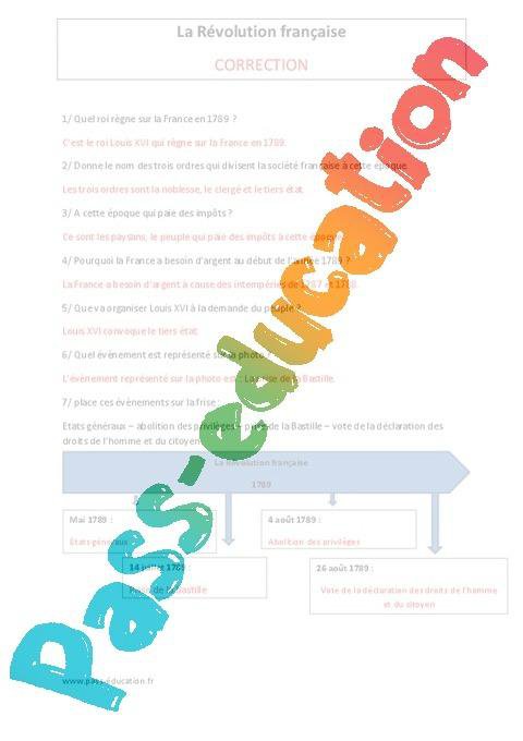 Lecture + questionnaire + Correction sur la révolution française