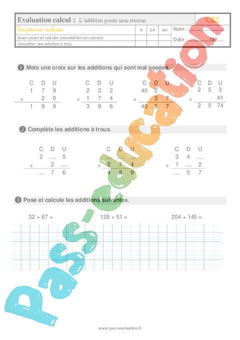 Evaluation Ce1 L’addition posée sans retenue pdf