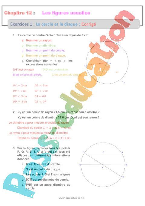 Exercices – Le cercle et le disque – 6ème – Figures usuelles rtf