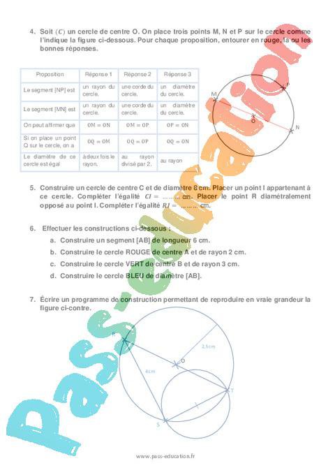 Exercices – Le cercle et le disque – 6ème – Figures usuelles pdf