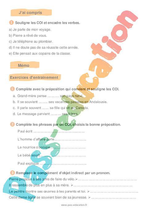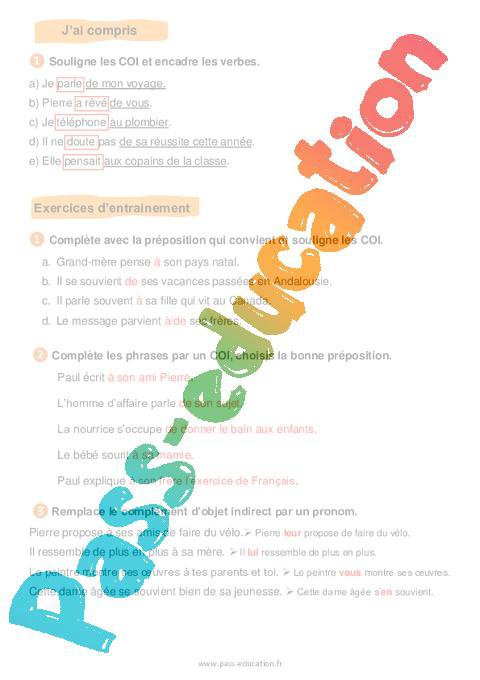 Le complément d’objet indirect (COI) – Cm1 – Soutien scolaire pdf