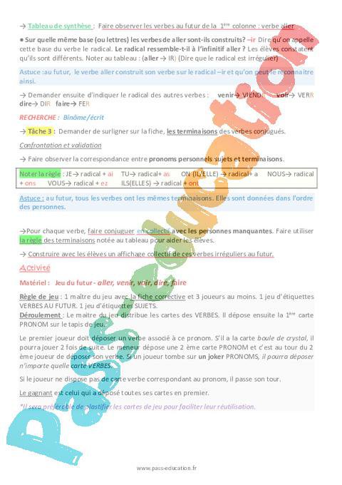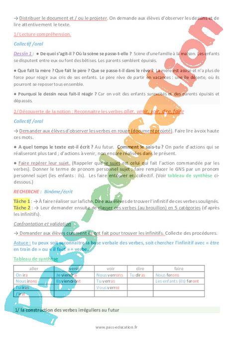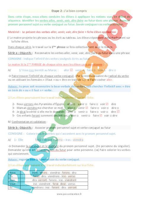 Présentation de la séquence Le futur des verbes aller, venir, voir, dire, faire Ce2 rtf
