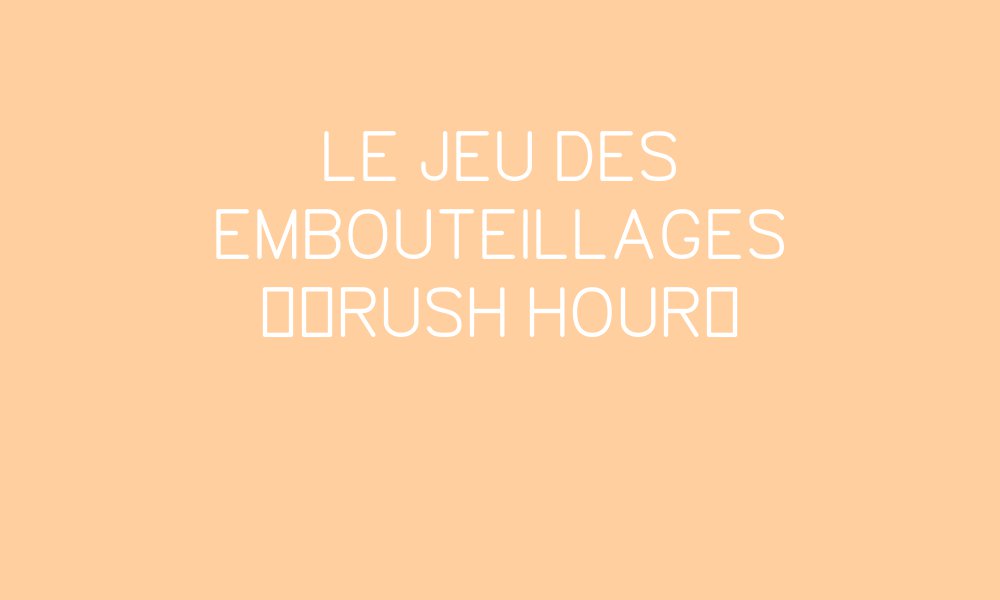 LE JEU DES EMBOUTEILLAGES ‘‘RUSH HOUR’ (0 avis) | 3 Clics Classe PS MS GS CP CE1 CE2 Matière Indéterminé Type Autre Description LE JEU DES EMBOUTEILLAGES ‘‘RUSH HOUR’