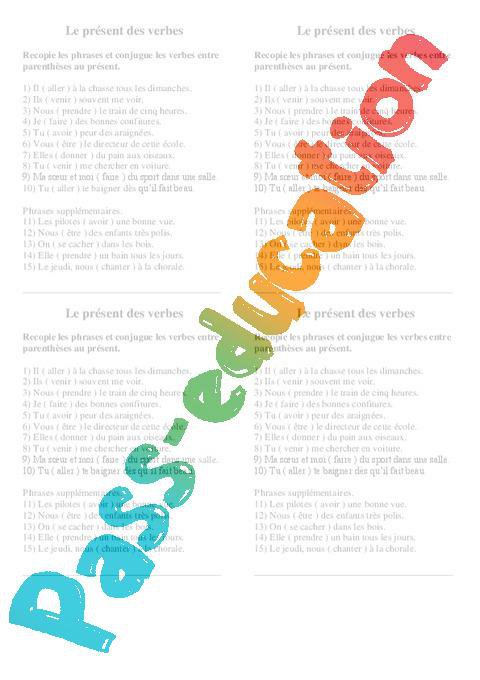 Le présent Ce1 – Exercices conjuagaison – Cycle 2 – PDF à imprimer