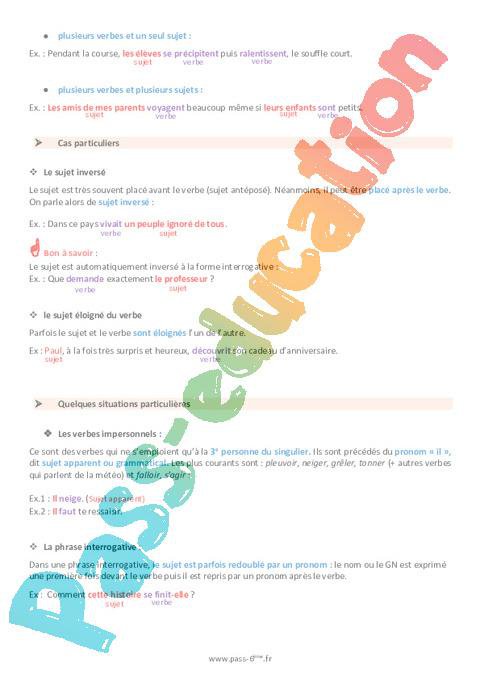 Le verbe et son sujet – Cours de grammaire pour la 6ème pdf