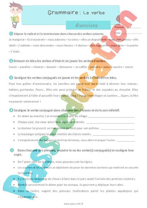 Le verbe – Exercices de grammaire pour le cm1 pdf