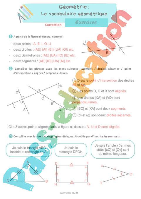 Le vocabulaire géométrique – Exercices de géométrie pour le ce2 pdf