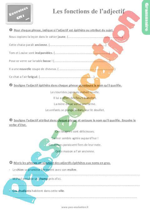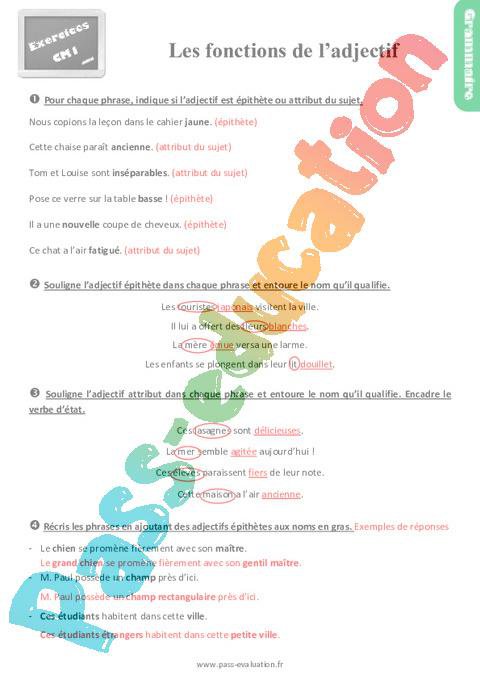 Exercices Correction CM1 Les fonctions de l’adjectif pdf