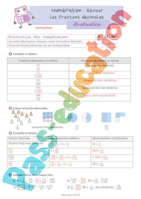 Evaluation de numération pour le Cm1 sur les fractions décimales (révision) au Cm1.