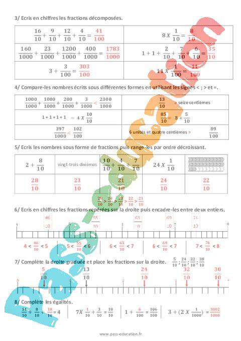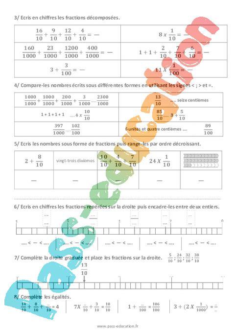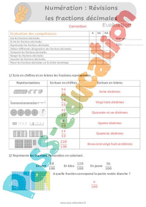Les fractions décimales (Révisions) – Évaluation de numération Cm1 Cm2 rtf