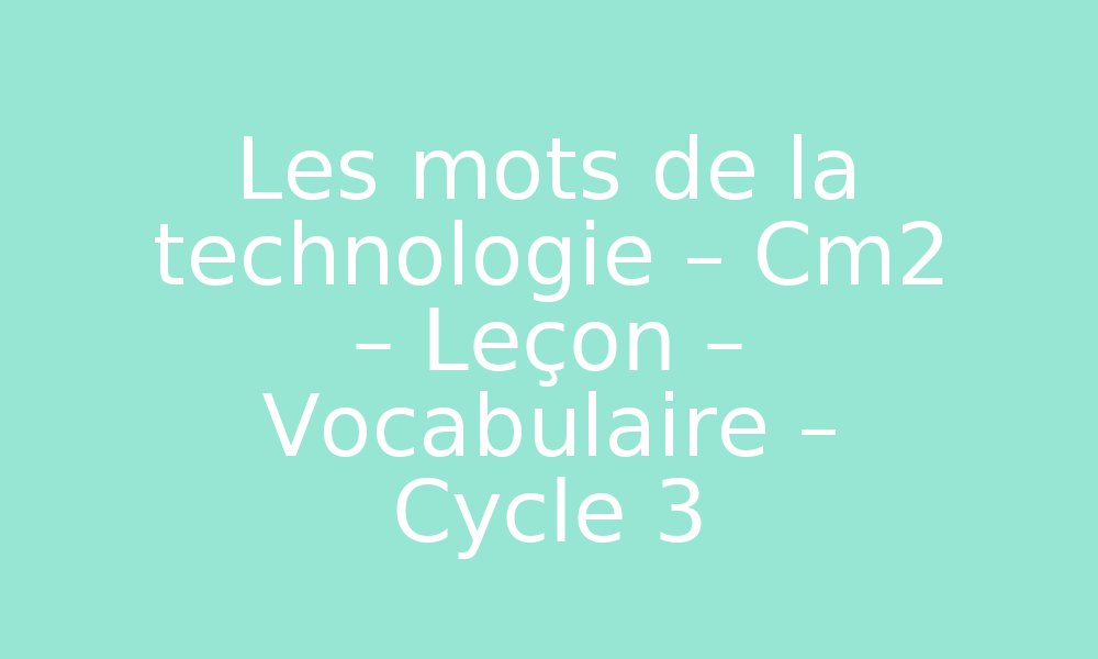 Les mots de la technologie – Cm2 – Leçon – Vocabulaire – Cycle 3