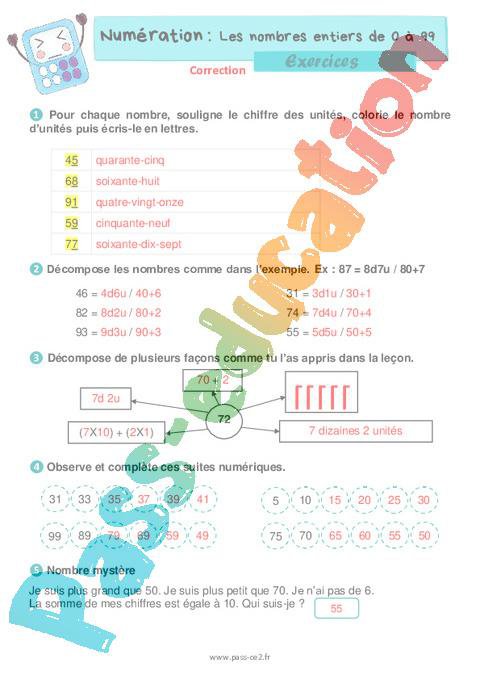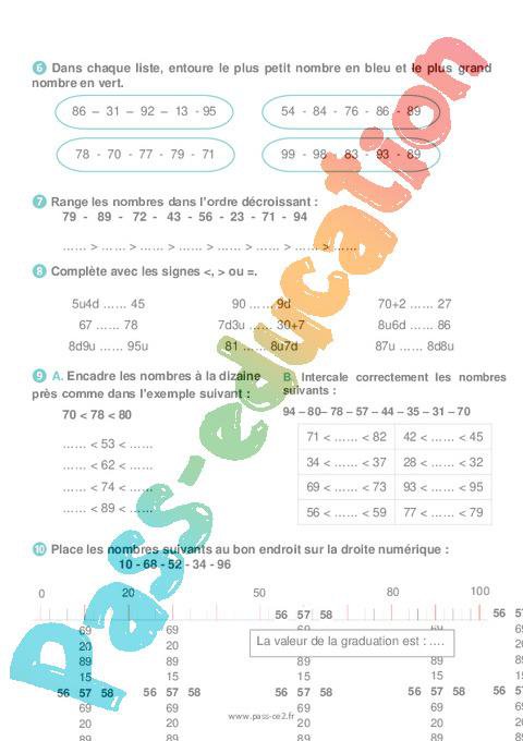 Exercices Ce2 Les nombres entiers de 0 à 99 pdf