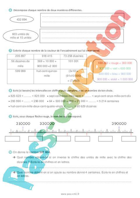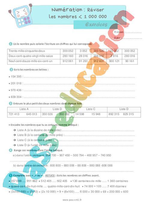 Exercices Cm1 Les nombres inférieurs à 1 000 000 (Révision) pdf