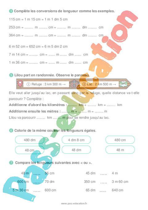 Les unités de longueur – Ce1 – Exercices de Grandeurs et Mesures – Cycle 2 – PDF à imprimer
