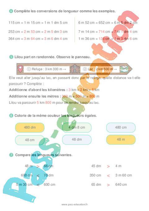 Exercices de Grandeurs et Mesures avec la correction sur les unités de longueur au Ce1.