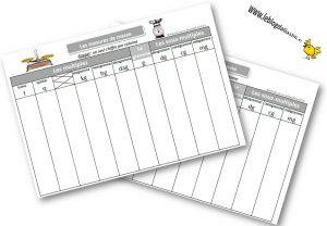 mesure de masse TABLEAU AIDE CM1 SANS ILLUSTRATION
