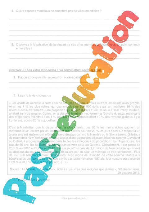 Exercices Les villes dans la mondialisation pdf