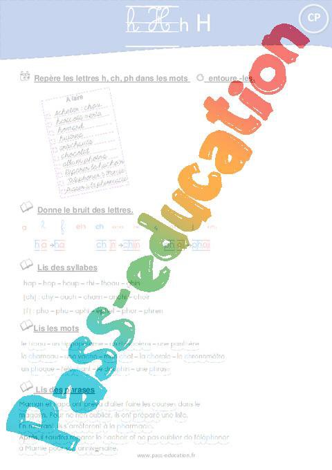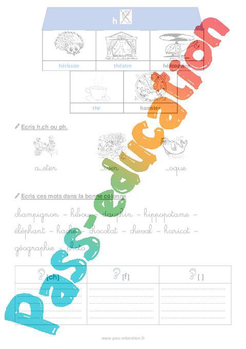 Lettre H (h, ph, ch) – CP – Exercices – Cycle 2 – PDF à imprimer