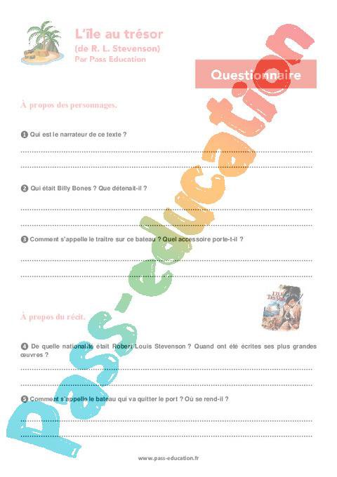 L’île au trésor (de R. L. Stevenson) – 6ème – Lecture – Cycle 3 – PDF à imprimer