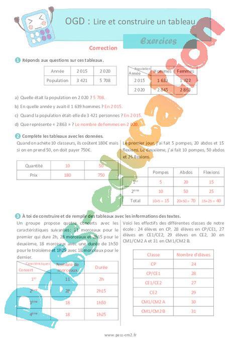 Exercices CM2 Lire et construire un tableau pdf