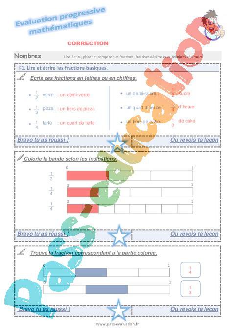 Lire et écrire les fractions basiques au Cm1 – Evaluation progressive pdf