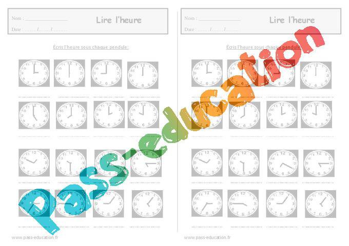 Lire l’heure – Ce1 – Exercices mesures – Cycle 2 – PDF à imprimer