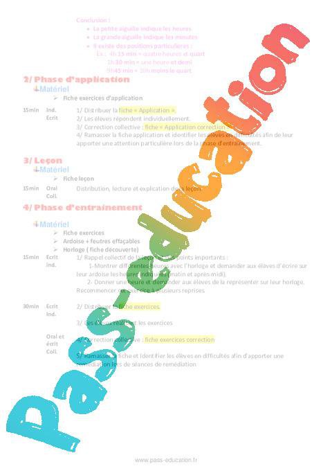 Fiche de préparation-CM1-Lire l’heure pdf