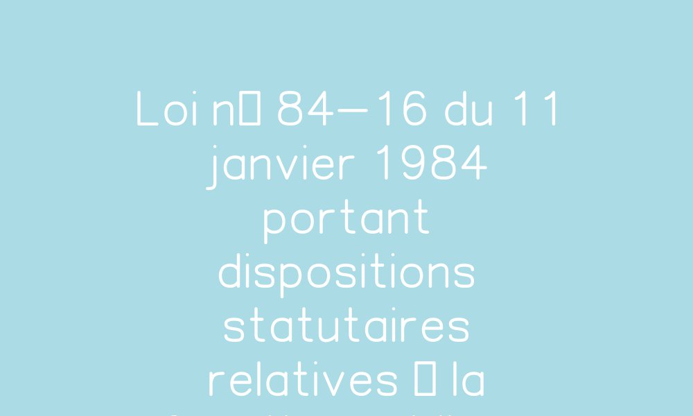 Loi n° 84-16 du 11 janvier 1984 portant dispositions statutaires relatives à la fonction publique de l'Etat | Legifrance