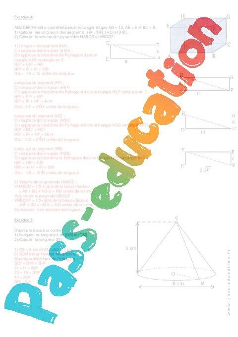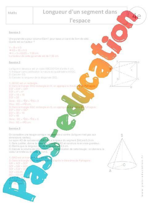 Longueur d’un segment dans l’espace – Exercices corrigés – 4ème – Géométrie   rtf