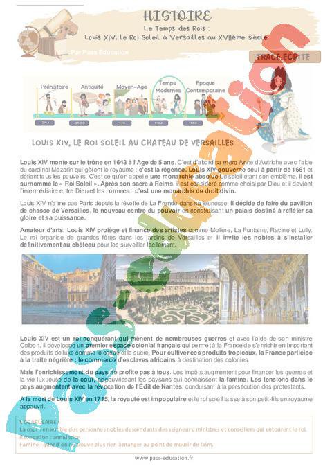 Louis xiv, le roi soleil à versailles au xviième siècle cm1 – leçon – cycle 3 – pdf à imprimer