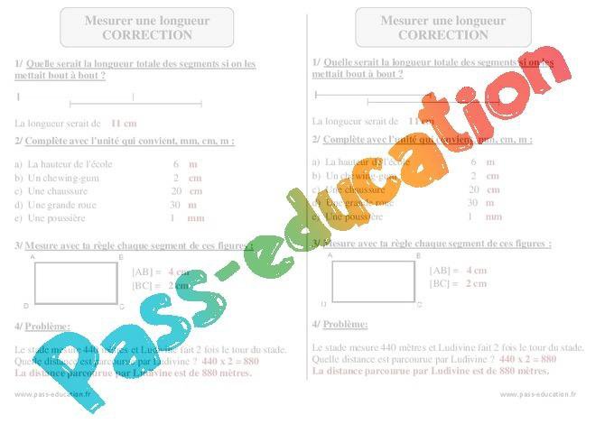 Mesurer une longueur – Ce1 – Exercices avec correction   pdf