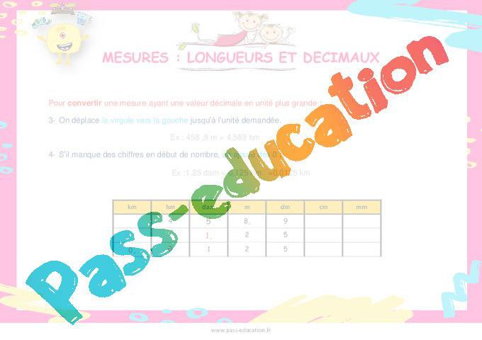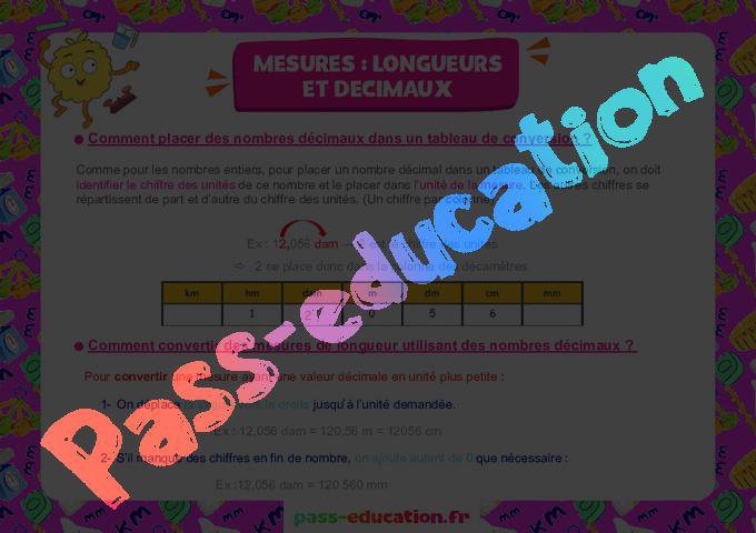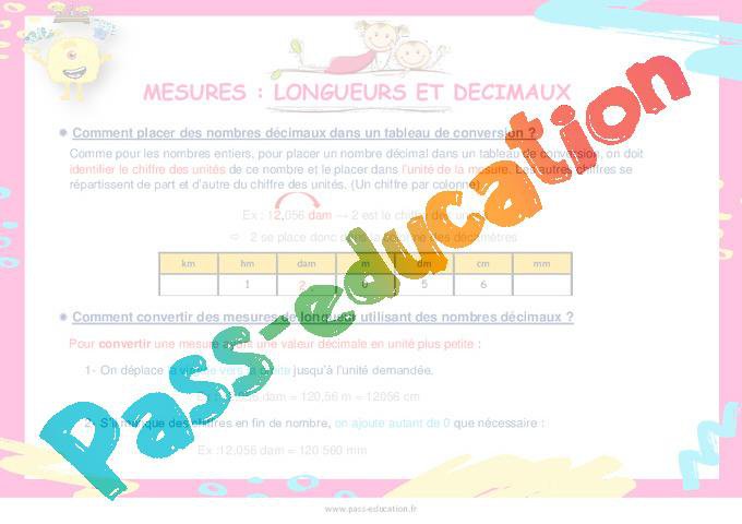 Affiche de classe sur « Mesures : longueurs et décimaux » au Ce2, Cm1 et Cm2 – Cycle 3